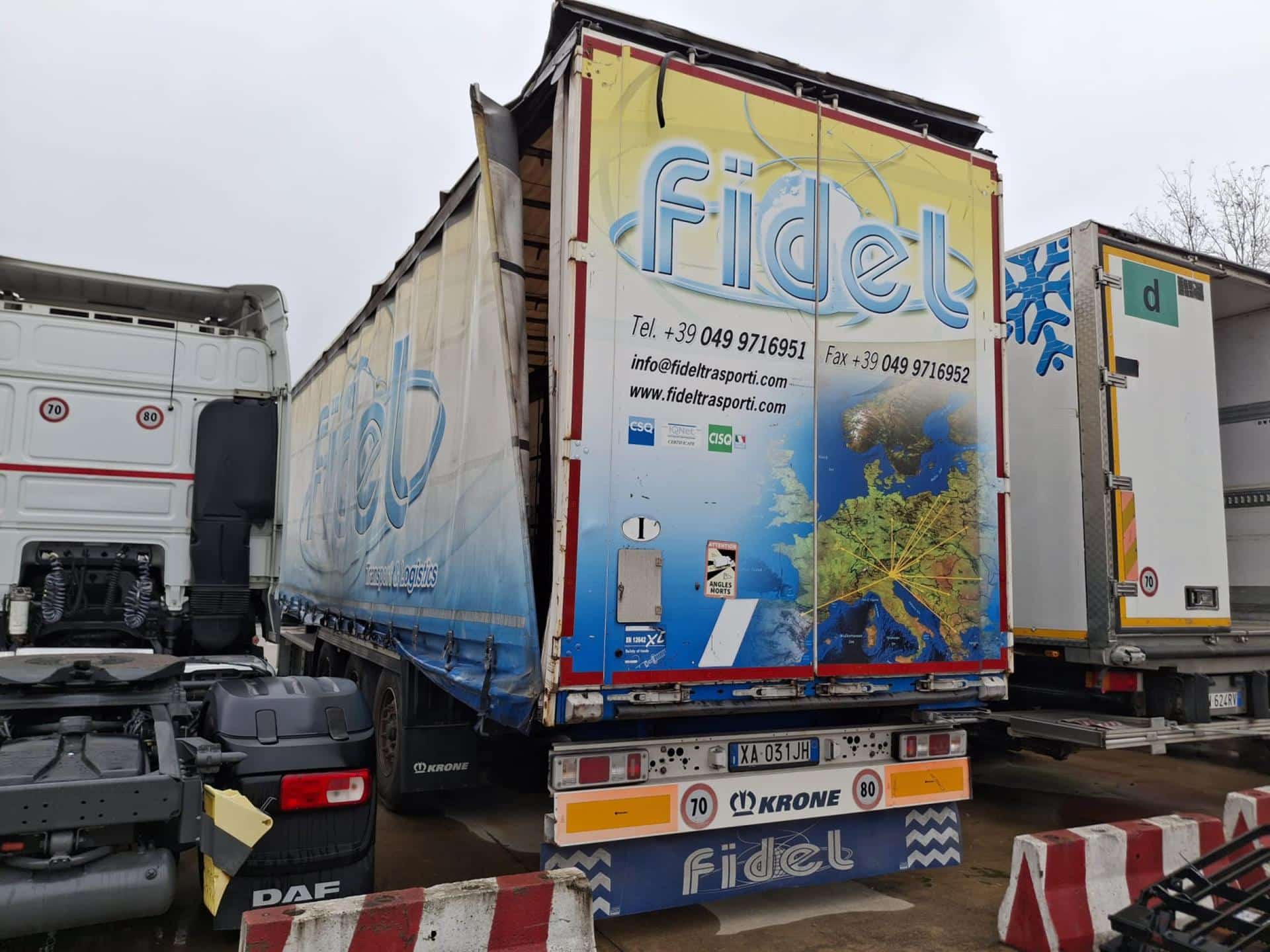 Note: SEMIRIMORCHIO COSTRUTTORE: FAHRZEUGWERK KRONE CENTINATO PNEUMATICI 385/65 R 22,5 LUNGHEZZA 13, 860 M LARGHEZZA 2,550 M PORTATA 31910 KG DOTATO DI CENTINATURA INAMOVIBILE TELONE FISSO E PORTA POSTERIORE IDONEO AL-TRASP. IN ADR CLASSE EX/II